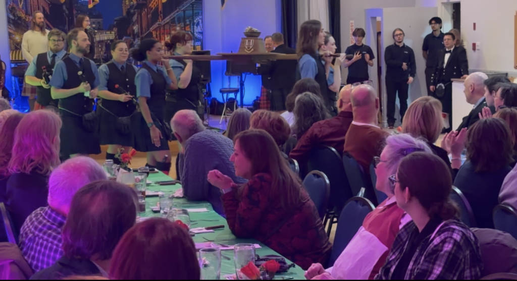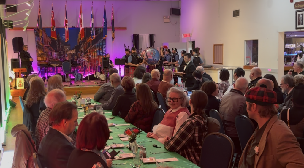 From the fantastic roast beef dinner, to the haggis special, and the beautiful bagpiping, drums, and traditional music performed by the Montreal Highlanders, the entire evening was electric. The sound of the pipes and drums filling the Legion created a powerful and unforgettable atmosphere that truly honoured Scottish tradition.